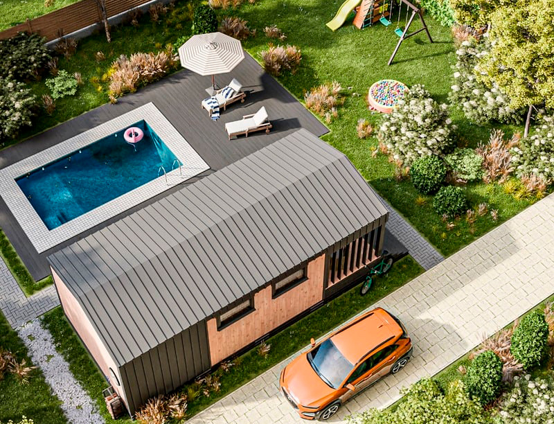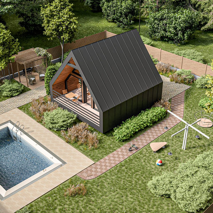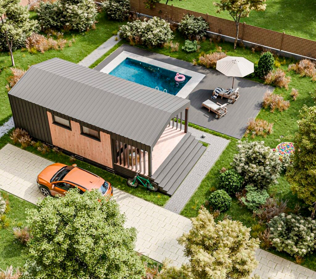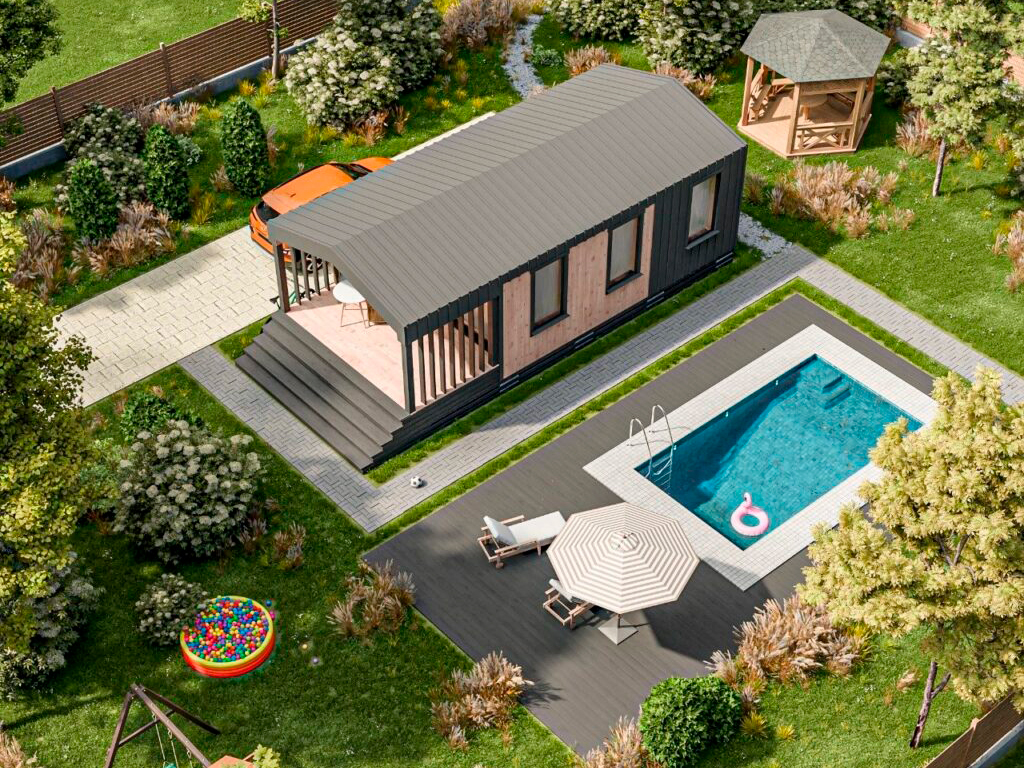 В базовой версии проекта мы предлагаем модульное строение от 30 до 50 квадратных метров, эту площадь можно трактовать как жилой дом.